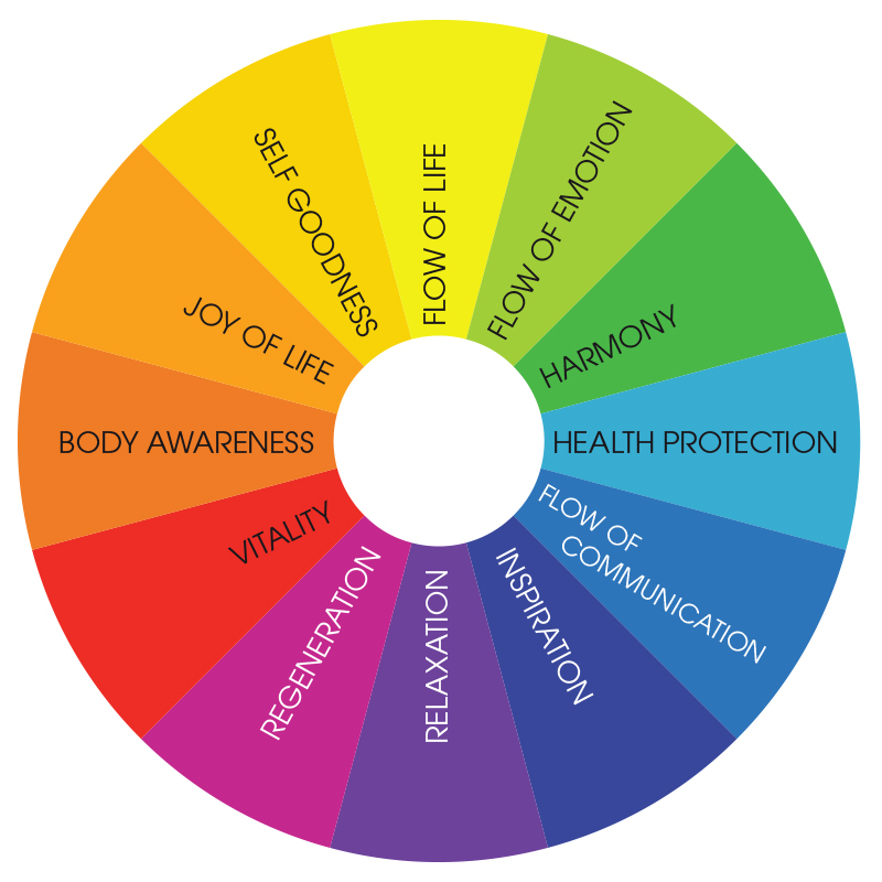 Wir wissen heute - das Leben ist Schwingung! Der Mensch ist Schwingung! Unsere Körperzellen kommunizieren und organisieren sich über Schwingung. So ist der Zellzustand und eine gesunde Zellmembran Spannung von höchster Bedeutung insbesondere für eine gesunde, jugendlich strahlende Haut. Schwingungen ermöglichen auch seelische, ebenso wie körperliche Entspannung und Regeneration. SOFRI hat diese Erkenntnisse von Schwingungen verschiedener Farbfrequenzen, in die einzigartige Sofri Color Derm Indication Behandlung integriert. Dies ist ein besonderer Mehrwert in der Energy Cosmetics Behandlungsphilosophie. Jede Farbe des chromatischen 12 Farbenkreises hat eine eigene Schwingung und dazu eine entsprechende Bedeutung für den Menschen.